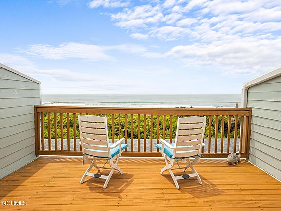 DIRECT OCEANFRONT FURNISHED CONDO WITH AWESOME VIEWS! Updated unit -never rented- in smaller complex ready for you to enjoy! Vaulted ceilings, newer engineered floors and updated kitchen add to the features. And don't forget your own garage for vehicle or LOTS of beach stuff! Good storage, newer roof and HVAC, new storm shutters, SS appliances, painting and more. Top level is BIG principal bedroom with nice closet space and private bath-and GREAT ocean view! Second floor living area & kitchen with deck and nice ocean views. First floor has bonus room/sleeping area with full bath and window ac&heat plus garage. Assoc. pool and pool house onsite. Designated and guest parking on site. Excellent beach access and LOTS of beach to enjoy!! Could be awesome rental unit if desired.All art work and some personal items DO NOT convey. Apple TV & remote in principal bedroom DO NOT convey.ROKU stick on TV in living area DOES NOT convey. RING door bell conveys-buyer to start new account