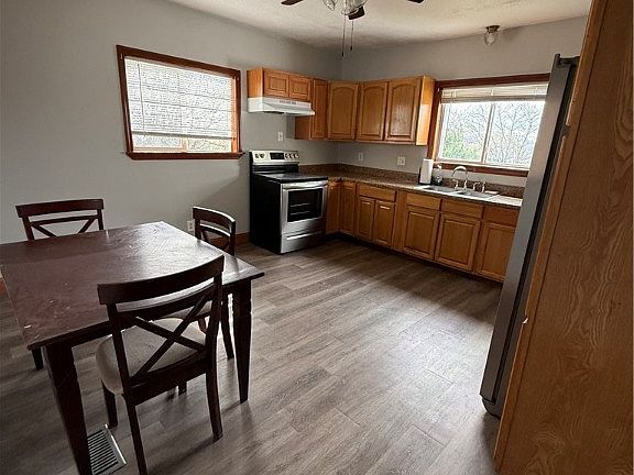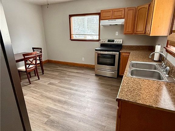 Beautifully updated ranch home in a semi private setting. This home features 3 bedrooms and 2 full baths located in the Brownsville school district. Large eat in kitchen with pantry, large living room with bay window, newer carpet and flooring on the main level and new carpet and walls on the lower level with a sliding glass door that leads out into the yard.. New HVAC system installed in 2024. Nice sized covered front porch. Electric stove, refrigerator, and dryer included. Move right in!
