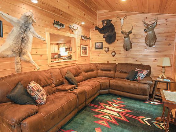 Enter through the mudroom, which is equipped with a full-size washer and dryer. Make your way into the fully set-up kitchen and dining area with seating for up to 8. On the first floor, you also have a Primary bedroom, full bathroom, reading nook and separate living room with TV.