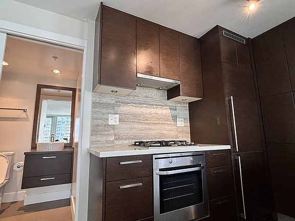 Welcome home to Dolce, situated in the highly sought-after heart of Downtown Vancouver. This contemporary open-concept condo features hardwood flooring throughout, over-height ceilings, and floor-to-ceiling windows that fill the home with natural light while offering stunning views of the city skyline. The gourmet kitchen is thoughtfully designed, featuring custom millwork cabinetry, integrated stainless steel appliances, including a gas cooktop, a stainless steel farmhouse sink, polished stone countertops, and a spacious island, perfect for an evening of cooking. Residents enjoy an impressive array of amenities, including a 24hr concierge, fitness centre, sauna/steam room, hot tub, and a rooftop patio with a lounge area.