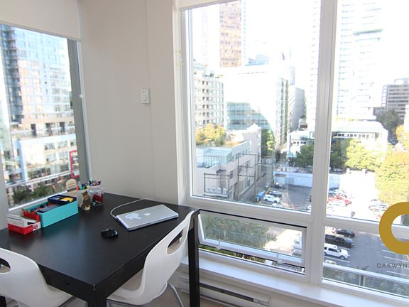This corner unit has a total living space of 524 square feet, including 1 bed and den, 1 bath plus with a solarium. The north facing unit has a spacious living room and a modern kitchen with quality appliances. (Gas cook top, polished counters) The building includes concierge, exercise room, indoor hot tub, playground and more. Conveniently located in the heart of downtown Vancouver. Steps away from IGA, H-Mart, HomeSense and Staples. Surrounded by numerous restaurantsl; Social Corner, Roxy Burger, Colony Bar, Jinya Ramen and more!We are looking for a 1 year lease. References, background and credit checks will be conducted on applicants. No pets and no smoking.