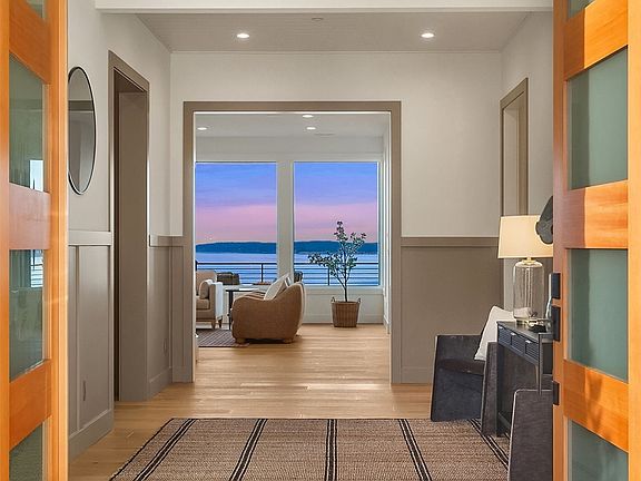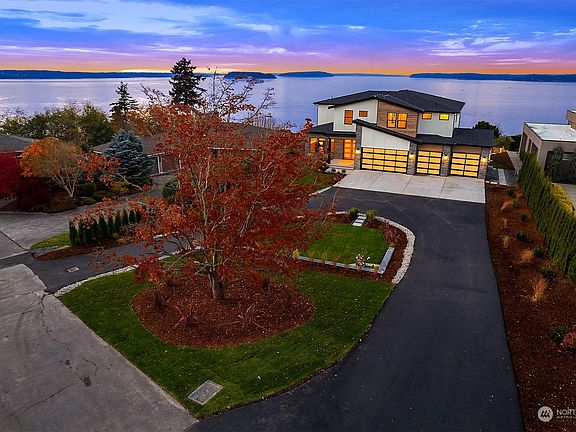 Uninterrupted vistas of the Puget Sound stretch from Olympics to North Cascades & Baker, framed by walls of west-facing windows in this luxe new construction by J&S. Open-plan design blends cohesive tones, textures, & lighting for an elevated ambiance. Gourmet kitchen w/ leathered quartzite waterfall island, 2 ovens & 6-burner gas cooktop. Open butler’s pantry off dining. 100” fireplace w/ wood-slat design. Seamless indoor/outdoor flow w/ view decks & built-in BBQ. Easily add pickleball ct or pool! 5 beds, office, & bonus. Top-floor Primary Suite has view deck, stone accent wall & opulent spa bath w/ oversized dual walk-in shower, & soaking tub. WIC. Long circular driveway & 4-car garage w/ built-in mudroom. Privately nestled in View Ridge.