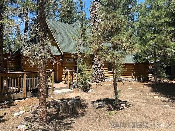 Charming "Maltby" Log Cabin. Fall in love with this one-of-a-kind, 3 bed, 2 bath log cabin tucked away on an oversized, 12,500sf level (5-25'x100' foot lots combined versus many of the properties on one 25' x 100' parcel), corner lot parcel. Featuring a cozy stone fireplace, warm wood interiors including custom beam ceilings and split log walls at living room as well as entire exterior facade, and vintage charm, this rare find blends rustic character with peaceful surroundings. A true gem for those seeking privacy, space and timeless style-just minutes from town. Complete renovation includes newer roof, plumbing, electrical, dual pane windows, central heating and air, tankless water heater, custom kitchen with quartz, stainless appliances and vaulted ceilings, 2 custom baths with walk-in shower at hall bath, laundry closet w/stacked full size washer & dryer, vaulted beam ceiling at primary bedroom, luxury vinyl flooring throughout with decorative tile at baths, etc. Property is fully furnished with "Nordstrom" beds and professionally decorated. 3rd bedroom closet removed to enlarge kitchen but size of a bedroom, thus public records reflects a 2 bedroom. Exterior features "trek" wraparound front porch, partial fencing and large portable shed. Property can also be viewed on Airbnb or VRBO "Rainbow Connection-Big Bear". Agent is also the owner. Please call first for availability and entry code. Cabin rents often and do not want to disturb if occupied. Property is an original "Maltby" split log exterior and interior at living room. The home was built in 1936 and originally included a 1 car garage (~21' x 10.75')which was converted within a few short years after construction into a bedroom. It is believed to be permitted, however, no permit records are available before 1946. Public records indicates 913 sq. ft. with 2br/1ba. Middle bedroom has a portable closet, hence technically not considered a bedroom for public record purposes but size and utility of a bedroom. Primary bathroom was added in 2021. Owner is licensed real estate agent and certified licensed residential appraiser. Home measures 998 square feet. Difference in living area measurements versus public records could be based on current ANSI measure methods which is from exterior walls versus potential interior wall measurements from 1936. Basically, footprint of exterior, including permitted garage conversion, has not been altered as noted by original split log exterior common of highly desirable "Maltby" cabins. New ABS plumbing which are wrapped and programmed to always be at a temperature so as not to freeze or to have to be winterized, newer 200 amp electrical service, etc. Home remains cool in summer and retains heat in winter. Complete renovation includes newer roof, plumbing, electrical, dual pane windows, central heating and air, tankless water heater, custom kitchen with quartz, stainless appliances and vaulted ceilings, 2 custom baths with walk-in shower at hall bath, laundry closet w/stacked full size washer & dryer, vaulted beam ceiling at primary bedroom, luxury vinyl flooring throughout with decorative tile at baths, etc. Property is fully furnished with "Nordstrom" beds and professionally decorated. Exterior features "trek" wraparound front porch, partial fencing and large portable shed. Property can also be viewed on Airbnb "Rainbow Connection-Big Bear". Agent is also the owner. Please call first for availability and entry code. Cabin rents often and do not want to disturb if occupied.