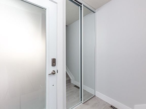 LOCATION! LOCATION! Welcome to this beautifully upgraded 900+ sq. ft. townhouse featuring modern finishes throughout and a spacious backyard. The main floor offers a spacious tiled entryway leading into an open-concept living and dining area with engineered laminate flooring and a stone-surround fireplace. Enjoy the elegant flat ceiling with LED lighting, 6" baseboards, and neutral modern décor throughout. The kitchen has been fully updated with brand-new high-end cabinets, quartz countertops, porcelain tile backsplash, and stainless steel appliances. Upstairs features two generous bedrooms with custom mirrored closets and a stunning 4-piece bathroom with vinyl plank flooring and upgraded finishes. The fully finished basement provides additional living space and includes a laundry area. This home is move-in ready, low maintenance, and has been tastefully updated from top to bottom — perfect for first-time buyers, downsizers, or investors alike. Nothing to do but move in and enjoy!