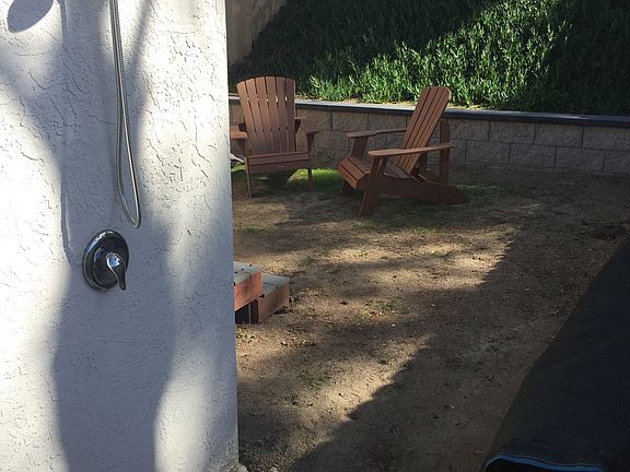 Bistro lighted backyardAccordion back doorsSoaker tub in restroom