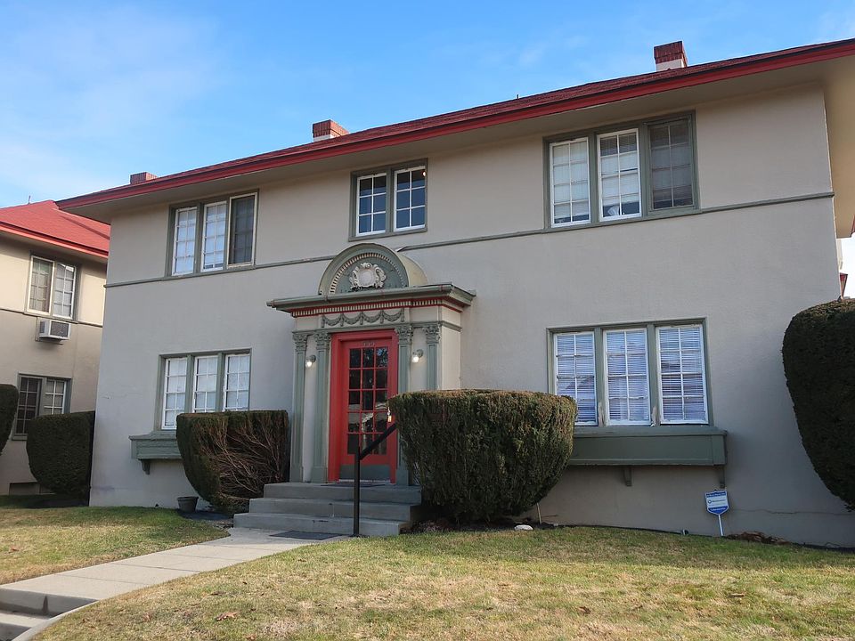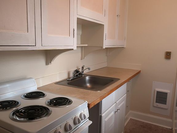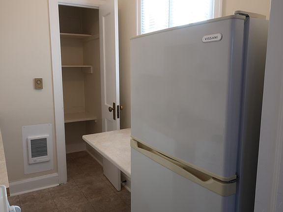 This one bedroom apartment has nice hardwood floors in the living room and bedroom and is perfect for 1 person. The kitchen has lots of cupboard space and a built in pantry for more storage. The bedroom has a nice view of the shared courtyard and the en-suite bathroom. The property is close to downtown and has a coin-operated laundry in the building.