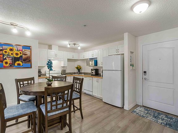 FANTASTIC VALUE in The Hamptons! This bright 2 bed/2 bath condo in Park Place Hamptons comes with 2 titled parking stalls and in-suite laundry with large storage. The open floor plan features new vinyl plank flooring throughout the entire unit, with a spacious eat-in kitchen, generous living room, and access to a private deck, perfect for BBQs or relaxing. The primary suite offers a walk-through closet and 4pc ensuite, while the second bedroom is equally roomy. Big windows bring in loads of natural light throughout. Well-maintained building with wide hallways and elevators, plus condo fees include heat, water, and more. Conveniently close to shopping, dining, trails, and quick connections to the Henday, Whitemud, and West Edmonton Mall. A move-in ready home in a great community!