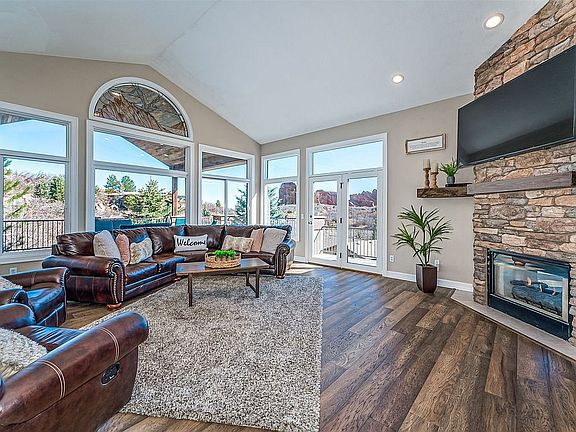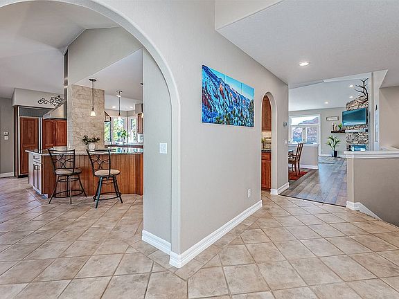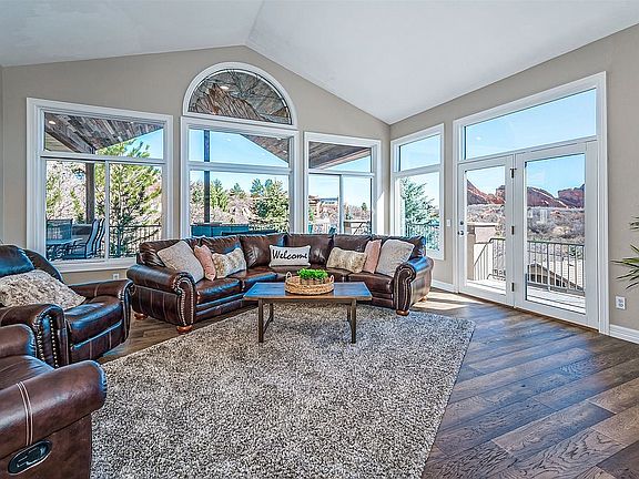 WOW! Stunning ranch home with a finished walkout basement in Stonehenge! Completely re-done!! Spacious foyer opens up to a grand vaulted formal living room featuring an elegant double-sided fireplace with rock surround, and a reclaimed wood wall that goes beautifully with the unobstructed views from floor-to-ceiling windows! Simply breathtaking! Abundant maple cabinets, granite countertops, and a heated tile floor are just a few of the special features you'll discover in this gourmet chef's kitchen!! A sunny eating space overlooking the back deck is ideal for year-round BBQs, or for enjoying Colorado sunrises with your morning coffee! The master suite features a remodeled 5-piece bath with heated tile floor, stand-alone tub, and a walk-in shower - a true retreat! A second bedroom on the main level with attached full bath is perfect for a nursery, office, or guest bedroom! The finished basement is "to-die-for" and boasts a large family room with theater area, fireplace, wet bar and rec room, three more bedrooms, and two 3/4 baths! This is a great space for gathering with friends and family! Walk out to the rear covered patio with built-in fire pit and in-ground hot tub and enjoy views of rock formations and the nearly 1 acre lot! Extra special features of this home include a heated driveway for easy snow removal, new interior and exterior paint, new carpet, reclaimed wood deck ceiling with can lighting, fully equipped basement wet bar with beverage fridge, ice maker, and microwave, plus the bar stools (7), theater chairs (6), pool table and accessories, ping-pong table, dart board, and both built-in TVs are included! Absolutely gorgeous location with secluded feel! Scrub oak and rock formation views all around! You will not find a better location in Roxborough! Welcome Home!