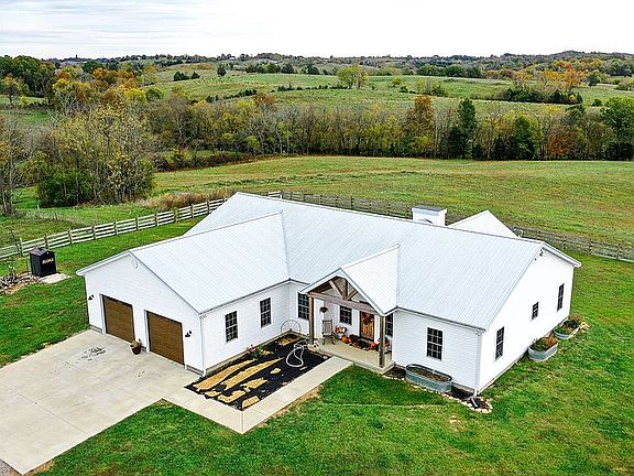 Built in 2022, this 3 bed, 2 bath home offers 2010 sq. ft. of open-concept living with vaulted wood ceilings, a stone fireplace, and wide-plank hardwood floors throughout. The kitchen features stainless steel appliances, quartz countertops, bar seating and a large walk-in pantry. The spacious Master/Primary suite features a private bath with oversized tiled walk-in shower, a double vanity and a large walk-in closet. The additional bedrooms include large closets as well as a large bathroom nearby with a double vanity for ample elbow room. The covered back porch is perfect for entertaining guests or relaxing and enjoying life on the farm. Also out back, a deck stretches from the covered back porch to the master suite’s French doors allowing for more space to enjoy the swimming pool and/or hot tub. This home was constructed with energy efficient design in mind with a conditioned crawlspace, high-performance spray foam insulation throughout and optional use of an outdoor wood burning furnace for heating the home. The oversized 990 sq. ft. two-car garage provides ample space for vehicles, equipment, tools or recreational vehicles. This property includes a private gated driveway, perimeter and cross fencing, livestock waterers throughout and a barn ready for handling livestock. This home is the perfect blend of rural charm and modern efficiency – move in ready and built to last. For questions and showing availability, please call 606-879-2374.
