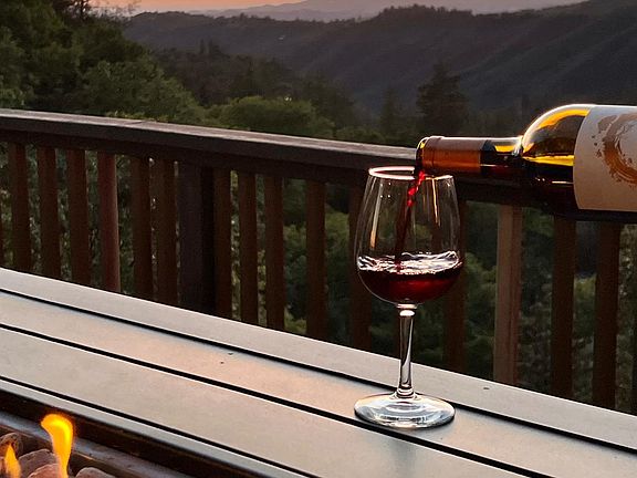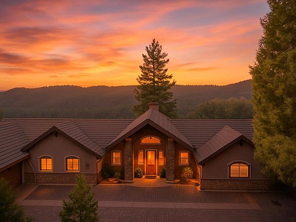 VIEWS from this stunning Murphys Ca. home! This stunning custom built home offers unmatched privacy and beauty, just 5 minutes to Ironstone concerts & downtown Murphys and 30 minutes to Bear Valley. Sitting on 3.1 acres, this fully furnished retreat was designed with premium finishes throughout, from the paver driveway to the rich Brazilian Cherrywood flooring. The main level welcomes you with an open living room, dining area, gorgeous kitchen featuring high end Labradorite counter tops, office, bedrooms, baths, laundry, and balcony, each space showcasing sweeping views. The primary suite features a spa like bath with its very own private sauna, the perfect place to relax and unwind. Downstairs, you'll find a separate game room, another full bedroom and bath, plus a hidden room for added character and flexibility. There's also 800-1,200 sq ft of unfinished space ready to be framed, ideal for extra bedrooms, a media room, or storage. Expansive Trex decking creates the ultimate setting for sipping your wine overlooking the Sierra Foothills. Whether you're seeking a luxurious full-time residence or the perfect second vacation home, this property offers endless possibilities and must be seen to truly appreciate.