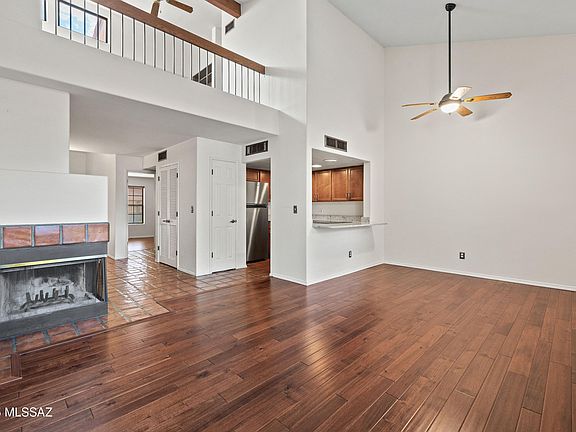 Come experience the perfect blend of comfort, convenience, & natural beauty. Nestled in the tranquil Sabino Canyon Foothills, this TH offers easy access to onsite amenities & Tucson's natural beauty. It boasts abundant natural light, with vaulted ceilings, open-concept living area, & a wood-burning fireplace.The kitchen includes ample cabinetry & modern appliances. The expansive primary suite offers a peaceful sanctuary, with walk-in closet & an en-suite bathroom. A versatile loft space overlooks the living area.HOA includes resort-style amenities; 2 heated pools, pickleball, clubhouse & fitness center, & covers Common Area Maint; Exterior Maint; Garbage Collection; Roof Repair; Roof Replacement; Sewer; Street Maint; Water; Fire subscription.Sabino Canyon is a short walk away.