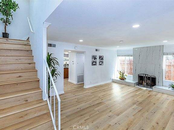 Welcome to your remodeled home in the Meadowbrook community close to Los Coyotes Gold Course. Features 3 bedrooms & 3 baths with an extra large two car garage at an unbeatable price. Step into modern luxury as you explore this fully upgraded home. The open layout welcomes you with new, premium luxury vinyl floors and 24 recessed lights, one chandelier, creating a bright and inviting. Total recessed lights in this house is 34. Living room has 24x48" Giacometti White Polished Porcelain new tiled fireplace & hearths. The Living room extends gracefully to your own family room/ Dining area. Beautifully remodeled kitchen features newer Mahogany cabinets, elegant granite countertops, and Island. The kitchen opens to a charming dining area, creating a seamless flow for entertaining. The guests will enjoy intimate meals. Your spacious Master bedroom has a walk-in closet, mirrored wardrobe closet, new custom countertop, three mirrors, new faucet, new floors & 6 recessed lights. Hallway bath is totally remodeled. This bathroom is a sanctuary of comfort with upgraded new shower wall, New pristine tub, and elegant fixtures, mirror and light fixtures with a recessed light. Every bedroom has four recessed lights and closet organizers. This private new patio, 18'x9' long has a flower bed with four Carolina cherry laurel. This home has smooth ceiling and laundry is located in the garage with service area(spacious) & lots of cabinets. Newer front door with beveled glass door entry and crown molding. You'll have access to an array of resort-style amenities, two sparkling pools, a clubhouse, and a basketball court. This exceptional community is ideally situated near Ralph Regional Park & Los Coyotes Golf Course, shops, restaurants, and easy access to the freeway. Your dream home awaits you at Meadowbrook! Award winning schools within walking distance of the Emery elementary, Beatty middle and Sunny Hill High. Act fast and make it yours today!