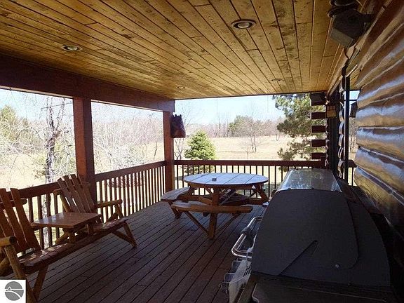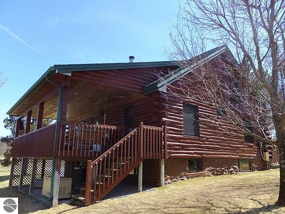 The "perfect" log cabin on the Boardman River. This place is immaculate and in move in condition. Granite counter tops, stainless appliances, stone fireplace, covered deck, basement. Detached 20' x 40' garage with walk-in storage above. Adjacent to Brown Bridge quiet area. The adjacent 200' lot is also available.
