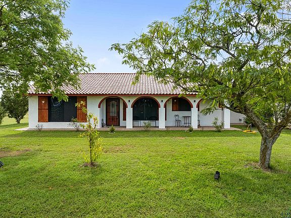 Welcome to this charming Spanish-style home nestled on 4 acres of serene countryside. With its distinctive architectural flair, this residence offers a blend of elegance and functionality. Upon arrival, you are greeted by a picturesque facade featuring stucco walls, red tile roofing, and traditional arches. Inside, the spacious floor plan encompasses three bedrooms and two bathrooms, each designed with comfort in mind. The living area is spacious and offers a view to the green acreage. The kitchen is perfectly equipped with range, dishwasher, refrigerator and freshly painted cabinets. Adjacent is the dining area, ideal for family gatherings and entertaining guests. The master suite is spacious and has two large closets. Two additional bedrooms offer versatility for guests or a home office, each providing ample space and comfort. Outside, the property is enhanced by a metal building designed to accommodate an RV, ensuring both convenience and security for your recreational vehicles. A two-car garage provides additional parking and storage space. A John Deere zero-turn conveys with the property! The expansive 4-acre lot invites exploration and relaxation, offering plenty of room for outdoor activities and potential expansion. Whether enjoying the sunset from the covered patio or sipping coffee on the arched patio this property embodies the essence of Spanish-style living with modern conveniences. Don't miss the opportunity to own this distinctive home where timeless design meets functionality in a tranquil countryside setting. *Update* The property is under contract with a contingency, but we are still showing it and accepting offers.