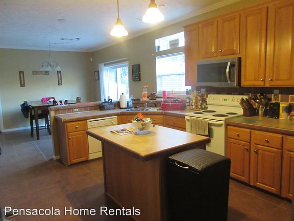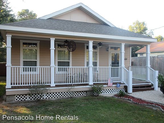 Adorable 3BR/2BA cottage close to beaches - Adorable 3BR/2BA cottage minutes to back gate NAS, Perdido Key beaches, boat launch, grocery stores, Orange Beach and Gulf Shores, AL. Large inviting covered front porch leads into the family room with 9 ft ceilings throughout. The over sized kitchen is fully equipped with an island, electric stove, built in microwave, dishwasher and side french door side side refrigerator with ice maker. The laundry room is located just off the kitchen. The dining area is large enough to accommodate a full size dining room table, or a breakfast set and leads to an open deck in the privacy fenced backyard with sprinkler system on well. There is a nice storage building for storing your lawn equipment, kids toys or other personal items. The master bedroom and bath are located on the back of the house. The MBA has a garden tub, separate shower, his/her sinks and a walk in closet. There are 2 other bedrooms just off the kitchen and a full bath. The entire house is tile and carpet. There is another small deck located off the laundry room. This is a really cute home and it's a large and well appointed home for the price. The home is wired with a security system, but the tenant would need to pay the monitoring fees if they choose to use it. Pet's are accepted with owner's prior approval. No Smoker's Please! (RLNE2724285)