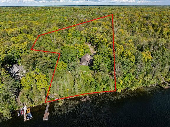 This is truly the perfect up-north getaway. Tucked in a private spot where you can relax, unwind, and enjoy beautiful Sand Lake. A year-round log home awaits you with a gorgeous stone fireplace and beautiful woodwork throughout. The spacious loft is perfect for extra sleeping room or just for hanging out. The large main-floor bedroom has a walk-in closet and the bath has a whirlpool tub along with the stackable washer and dryer. The enclosed screen porch is the perfect place to take in the outdoors while avoiding the Minnesota mosquitos. The basement has the second bedroom finished with tongue and groove and a potential family room with a walk-out. The yard is blooming with gardens full of beautiful perennials, landscaping, and raised garden beds. There are two storage sheds, an 8x12 and a 12x36 with electricity. There is plenty of room to build a garage on the 4 acre lot. It's an easy path to the lake and dock area. The 210 feet of lakeshore is hard sand bottom and you can fish right off the dock. Make this your up-north retreat or live in year-round.