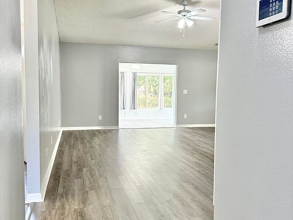 Beautiful 3 bedroom 2 bathroom concrete block home in PSJ. Nicely landscaped front yard, fresh paint in and out, newer vinyl plank flooring through out, enclosed back porch under air and much more. The garage has been converted to accommodate a larger master bedroom and closet; the remaining garage space is under air making this a great space for a playroom, man/girl cave, craft room or storage. Out back is a sturdy home made play/club house, or it could be used for storage, whatever your needs are really. Roof replaced in 2014, HVAC in 2020, Garbage disposal 2023. This home is a must see!