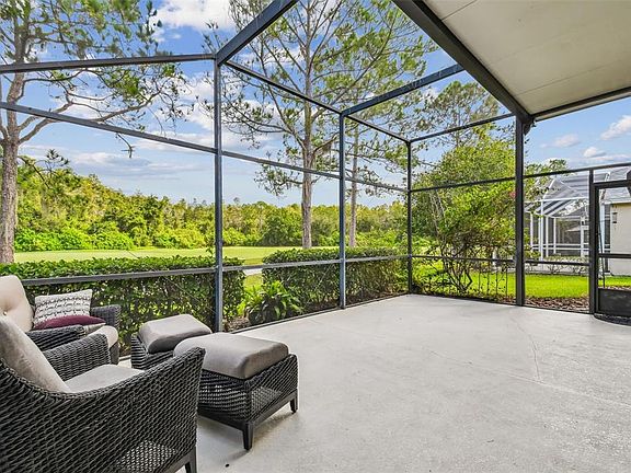 Beautifully renovated, gated, GOLF course views, maintenance-free 3 bedroom 2 bath home with high end designer finishes located at Lexington Oaks Wesley Chapel. This home has a plethora of upgrades including a newer roof (2022), NEW refrigerator(2025), NEW range hood(2025), and custom built plantation shutters throughout. The stunning master bath features a freestanding tub, marble mosaic, stand up waterfall shower, frameless glass enclosure with recessed shelf and floor to ceiling porcelain tile. The primary bedroom also has large windows and a built in walk in closet. The chef's kitchen has been upgraded with granite countertops and backsplash, commercial grade delta faucet, kitchen-aid dishwasher, stainless steel single basin sink, designer pendant lighting, new porcelain tile flooring and a plethora of storage. The family room is bright and airy with high ceilings, and sliding glass doors lining the east side of the home providing sunrise views from the rear lanai. In the evening, the sliding custom built plantation shutters provide energy efficiency and privacy. This home is located steps away from the 9th green of the Lexington Oaks Golf course. Stop home during a round of 18 holes or bring your putter to the 9th green after a long day. Remington Village is a maintenance free gated community with a private pool, lawn care, watering, exterior maintenance all included! Ideal for those who wants the advantages of single family living without the hassle. You also have access to Lexington Oaks amenities including Olympic style lap pool located at the community center, 24-hour gym, basketball, tennis, volleyball courts, soccer field, 18-hole golf course, playground, kids splash pad and clubhouse. One of the best locations in Wesley Chapel, Lexington oaks has miles of walking paths and is conveniently located minutes to I-75, Tampa Premium Outlets, Costco, Publix, Wiregrass Mall, The Grove, restaurants, shopping and much more!