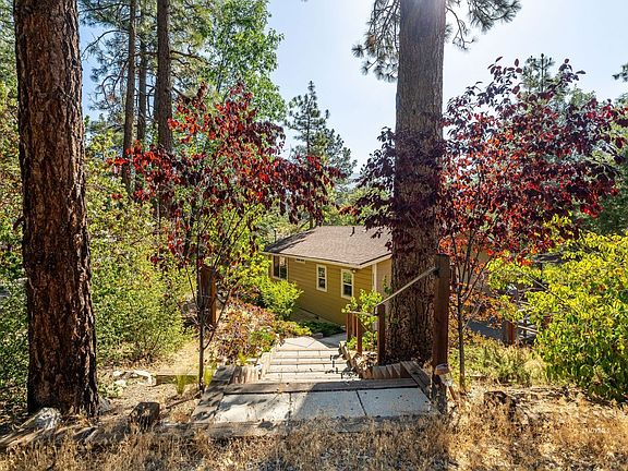 Cabin on Double View Dr: This furnished bungalow is a beautifully maintained three-bedroom, two-bath cabin nestled on a spacious, landscaped lot with scenic views of the surrounding mountains and trees. One large bedroom and bathroom is located downstairs with its own entrance-ideal for guests or extended stays. From the moment you arrive, you'll notice the pride of ownership and meticulous care in every detail. The inviting living room features a cozy wood-burning stove, while the fully-equipped kitchen offers both charm and functionality. Designer paint tones, rich laminate wood flooring, and French doors contribute to the home's timeless and welcoming style. Upgrades include a new roof, dual-pane windows, a mini-split HVAC system for year-round comfort, a QuietCool whole-house fan, and an exterior that has been freshly painted. The thoughtfully designed landscaping includes an irrigation system, adding to the property's curb appeal and ease of maintenance. Step out onto your tree surrounded deck to unwind and take in the peaceful setting-perfect for morning coffee or stargazing at night. Walking distance to Inspiration point is a bonus