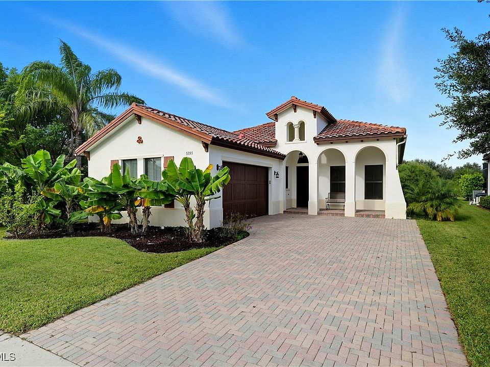 Welcome to 5355 Ferrari Avenue in the highly desirable Maple Ridge community of Ave Maria! This stunning 3-bedroom plus den, 3-bath home offers 2,341 square feet of beautifully designed living space with soaring 12-foot ceilings and a bright, open layout. The floor plan features two spacious living areas! One at the front and one at the rear; providing flexibility for entertaining or relaxing in separate spaces. The front two bedrooms share a convenient Jack and Jill bath, while the private primary suite is set apart, offering peaceful comfort.