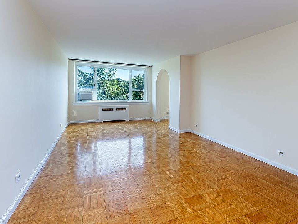 Pleasant Wooded and tree top views are offered from this large renovated Jr4 one bedroom apartment with a large living room, dining L, a Terrace, 5 closets, Windowed galley kitchen with all appliances, beautifully new hardwood parquet flooring and casement window. Apartment is vacant. 24 hour doorman and gym. The RIVER HOUSE Cooperative is a concrete building with reinforced ceilings. The apartment has upgraded electricals to easily accommodate AC units in each room. The apartment is in move in condition with beautiful arched entry to Dining L/Office and Terrace! This building is located within close proximity to shopping, transportation, parks and schools. Metro North Train station is just down the hill on W254th St or the Rail Link bus meets every train and stops by the building Monday through Friday and will get you there in 5 minutes. All of the local and express buses stop on the corner. No alternate side of the street parking restrictions in North Riverdale, making parking a breeze! Call me for an immediate appointment to show this unique apartment. Apartment Features: East exposure, South exposure, Terrace, Full park view, Floors - hardwood, Floors - parquet, Light - excellent, Renovated, Great closet space, Dishwasher and the Building Features: Exercise room ($7.00/month!), 24/7 doorman, live in Super, A grand coop owned park just to the south of the building and a Central laundry room. Pet Friendly.