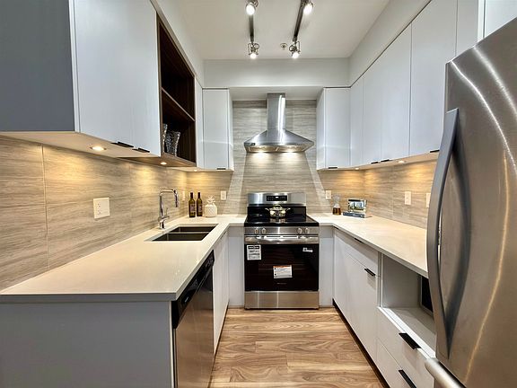Courtyard viewWell-designed layoutU-shaped kitchenLaminate flooringStainless steel appliancesQuartz countertopsIn-suite laundry