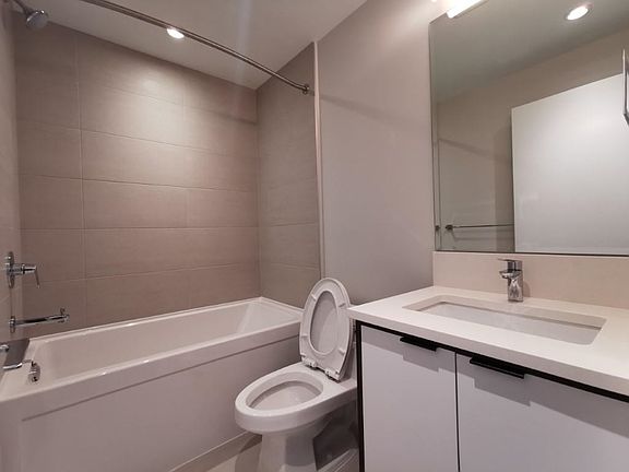 This open floor plan allows for a continuous flow throughout the kitchen, dining and living room areas. This home features 9' ceilings, stainless steel appliances, quartz countertops with undermount sinks, quality German faucets, laminate flooring, balcony, in-suite laundry, 1 storage,1 EV parking. Centrally located within minutes to public transportation and restaurants (3 to bus stop, 5 to Skytrain)