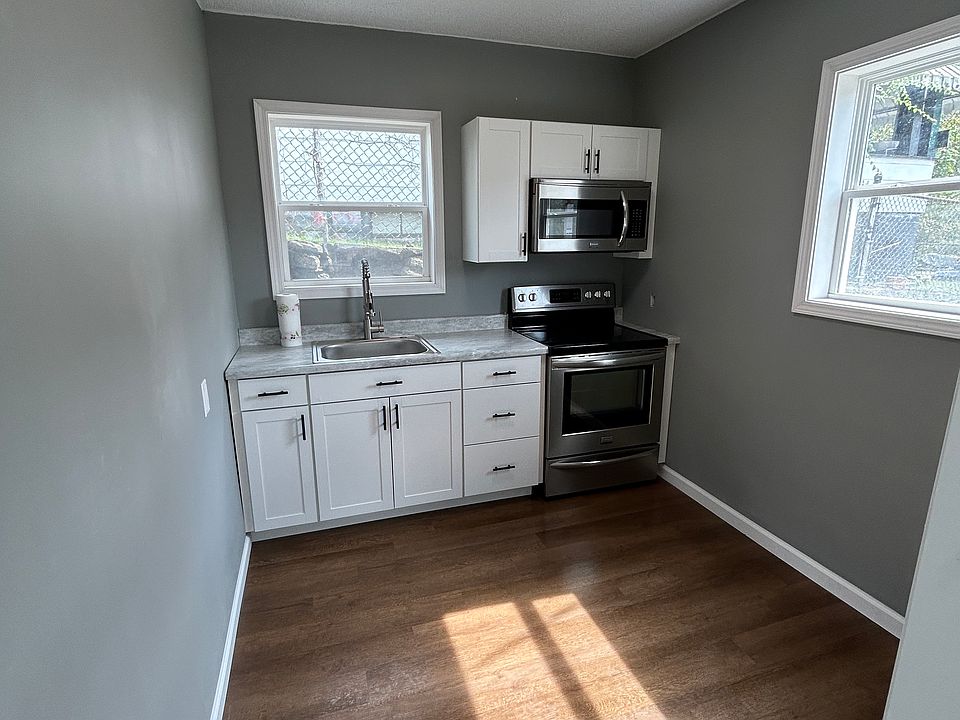 Apartment just renovated. Has not been lived in everything is brand new. Stainless steel appliances brand new kitchen cabinets, bathroom etc. energy star rated led lighting. New high efficiency hot water heater digital thermostat. Must see to appreciate. Minimum 1 year lease. Renter is responsible for utilities.