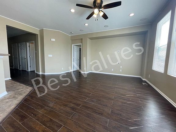 Fantastic 5 bedroom 3 bathroom ranch that backs to greenbelt with views of lake, walking paths and the mountains. This home features an open floor plan with recessed lighting and 3 bedrooms and 2 full bathrooms on the main. The kitchen has stainless steel appliances, a French door refrigerator and gas stove. The master bedroom offers an en suite bathroom and walk in closet. Downstairs you will find 2 more bedrooms and 3/4 bathroom and a large family room. Amazing large backyard with stamped concrete patio.