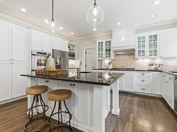 Nestled on a serene cul-de-sac in the highly sought-after Westlake neighborhood of Lake Oswego, this exquisitely remodeled residence embodies modern elegance and comfort with high ceilings and light-filled spaces. Almost every surface has been thoughtfully updated, seamlessly blending timeless sophistication with contemporary aesthetics. The generous floor plan includes four spacious bedrooms and a bonus room upstairs, complimented by a main floor den/office and a full bathroom. The chef-inspired kitchen features striking granite countertops, an abundance of custom cabinetry, an inviting island with breakfast bar and prep sink, as well as stainless steel appliances, including a five-burner gas range, a Miele dishwasher, and Dacor double ovens. The stunning primary suite exudes luxury, showcasing a walk-in closet and spa-like bathroom complete with heated tile floors, a deep soaking tub, a glass-enclosed tile shower, and a quartz vanity with dual sinks—each element newly appointed in 2023. The home boasts extensive hardwood flooring throughout most of the home, creating a warm and cohesive ambiance. Enjoy the outdoors in the spacious, level yard, which invites relaxation and gatherings with a large paver-stone covered patio, cozy firepit with built-in stone seating, a serene water feature, garden beds, and a maintenance-free turf yard—perfect for embracing the idyllic Westlake lifestyle. Miles of nearby walking trails provide opportunities for daily recreation, while nearby Westlake Park—home to Lake Oswego's popular outdoor summer concerts and year-round activities—adds a vibrant community touch. Completing this remarkable home is the rare 4-car garage, providing ample space for your vehicles and storage needs. Ideally located within moments to the highly regarded Oak Creek Elementary School and Westlake Park, this residence also offers quick and easy freeway access, and is just minutes from vibrant dining, coffee shops, shopping, and nearby Kruse Village.