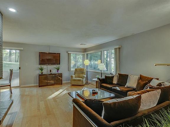 Beautiful mid century home set nicely on lot with mature trees. Great views from the corner windows in the open feel living room and dining room. Gorgeous hard ash wood floors. Enjoy the large kitchen, grill in comfort all winter with the indoor grill! Furnace is 2 years new. Relax and entertain in the outdoor spaces, large deck on the north side of the house and a large open patio on the other side. Fenced area could be great for pets or a garden. Sq ft and measurements approximate. Please verify schools.