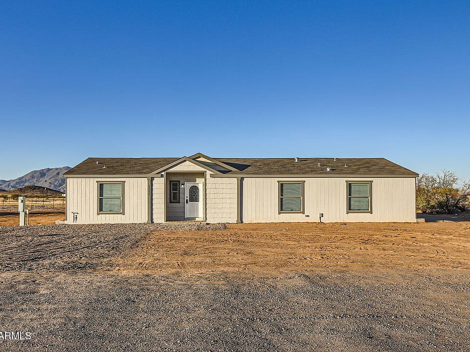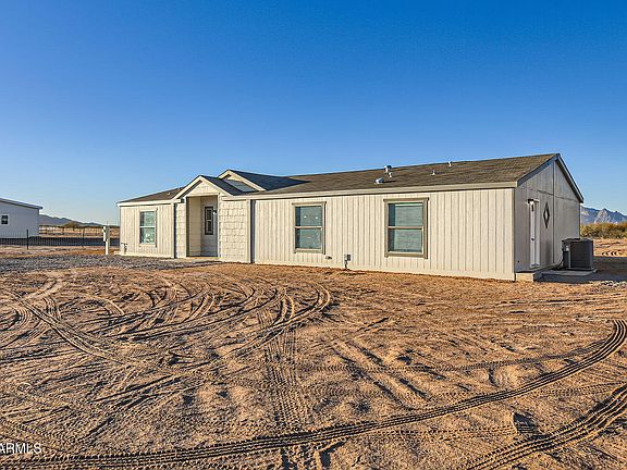 GREAT PRICE, SELLER CREDIT AVAILABLE, roomy 1.25 acre lot, and a beautiful home! This newly installed 4 bed, 2 bath, 1866 sq ft manufactured home move-in ready! The home was installed this year and was ground-set with a block stem wall for a strong set-up and structure. The floor plan and large eat-in kitchen are perfect for family, entertaining, or working from home. Enjoy the ample space for pets, family, ATVs, and other toys! Get to Maricopa quickly, and you're only a 40-minute drive to Sky Harbor Airport. Bowlin Rd will be paved by Pinal County within a year for smooth access. Owner holds Manufactured Home Dealer Lic #8928.