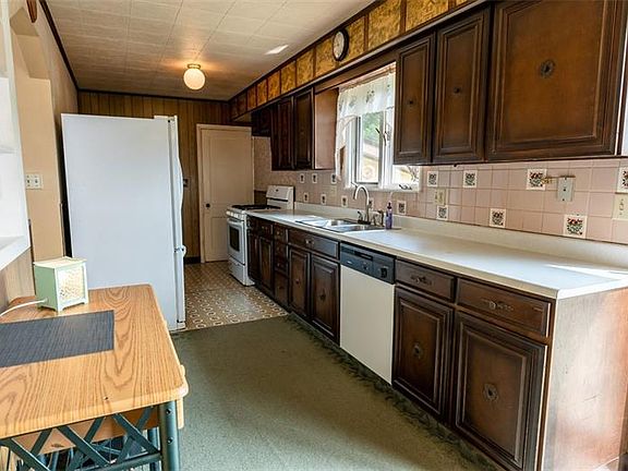 Nearly 5 acre parcel was working portion of original Hardt 100+acre farm-Pine Twp. Many outbuildings from farm are still there.1st 2 bldgs labeled coops but used as storage & woodshops . Half barn w/stalls for livestock.Block building is lrg shop great for mechanic/used lawn eqip repair but still have all of forges,working oven &pot belly stove. Rearbldg appears as large grg& is used to hold tractors and farm equipment. In addition is 5 car detached grg w/12 ft ceilings for lift,greenhouse, lean toos - wood storage Ranch home has a newer roof & 3 yr yng gas air furnace. Ramp acess to Liv rm w/stone fireplace din rm w/crystal chadelier,eat in kitch w/slider to new deck and walk in pantry. 1st flr den or brm +3 bedrooms and one has walk in area. Finishd low lev was in law suite, w/ 2nd fp w/wd burner can heat whole house, fruit cellar/canning rm,full kitch cld be converted to gm rm w/wet bar plus another brm and full bth all w/priv entrance,needs cosmetic updating but a rare find