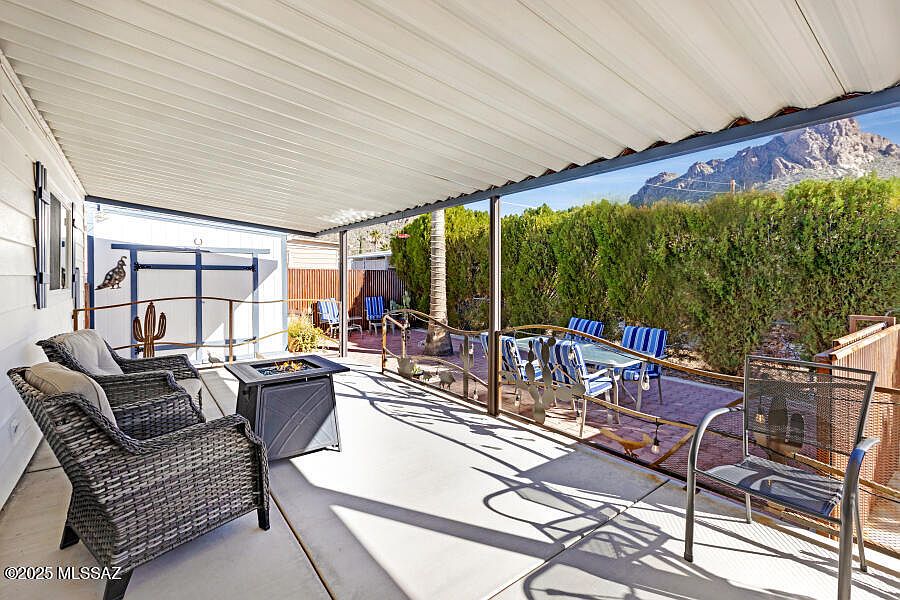 East facing patioAwesome patioNewer double pane windowsFencing for privacyVaulted ceilings