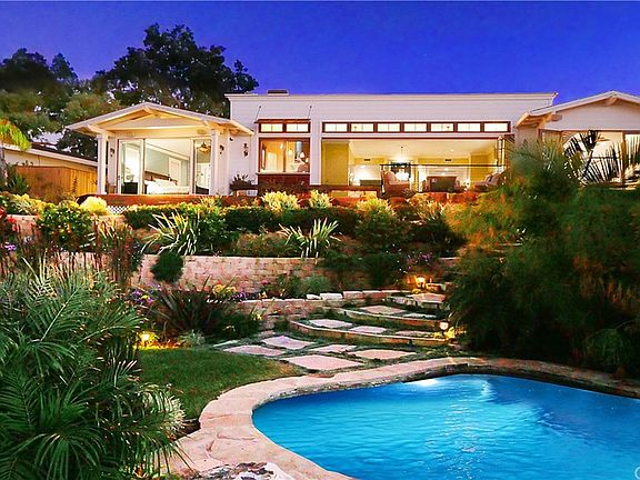 This newer Hawaiian coastal plantation, designed by Louie Tomaro, presents an opportunity of a lifetime. From the moment you open the front door you will be amazed by the stunning panorama that greets you. The light & airy great room boasts soaring ceilings, walls of glass, two fireplaces, a formal dining area, and a wet bar. The open floor plan leads to the gorgeous island kitchen with custom cabinets, top-of-the-line appliances, butler's pantry, breakfast bar & nook and more magnificent views. The romantic master suite with fireplace includes dual walk-in closets, a luxurious master bath, and French doors which lead to a deck to enjoy ocean, coastline and dazzling city light views from indoors or out. Four other bedrooms, including one with a separate entrance and mini kitchen, and three and a half more baths round out this beautifully designed one level. Over twenty feet of folding doors across the rear of the home open to a wide-spread deck, creating unsurpassed indoor/outdoor living perfect for entertaining. The professionally landscaped yard feels like your own private resort with a salt water pool, spa & waterfall, as well as a fire pit and impressive views. Create memories in this amazing home conveniently located on a quiet street near award winning schools, shopping, dining and beaches.