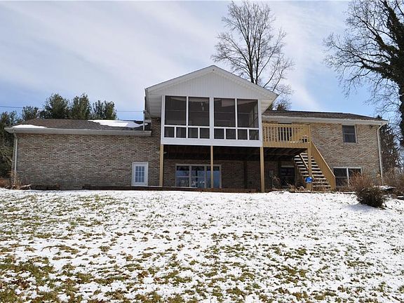 Rare opportunity to make this Craftsman brick home your new address. The main living area offers open concept with newer kitchen, living room and dining area. The Kitchen boasts of maple cabinets, ample counter space and fully applianced. This home is adorned with beautiful hardwood floors. The master bedroom is huge, measuring 24 long with access to handicapped bathroom. The lower walk out level includes family room with wood burning stove, 2 more bedrooms, laundry and full bathroom. You will appreciate the way this home has been lovingly cared for with new roof, newer windows, dual heating elements (gas or elec), dependable furnace and brick exterior. The setting is serene with beautiful sunsets, 1.5 acres, cul-de-sac lot and wooded views from your deck, enclosed porch or brick patio. Premium 12 x 32 x 14 RV shelter attached to new 28 x 32 garage, make this property complete.