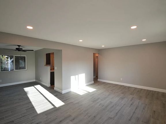 Modern tile flooringLarge private gated backyardTiled shower wallsSeparate dining areaStainless-steel appliancesRemodeled bathroomRecessed lighting