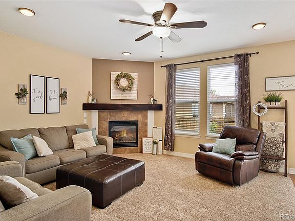 Spacious Parkfield home with its original owners and great updates! Enjoy an open concept main floor perfect for entertaining accented by brilliant natural light, hardwood floors, new carpet & fresh paint. A cozy gas fireplace in the living room is a perfect place to gather around on a cold winter night. Seamlessly transition to outdoor entertaining via a sliding glass door that opens out to the patio and fenced backyard. Well-appointed kitchen is sure to delight the home chef with its granite countertops, island with seating, updated stainless steel appliances, pantry & abundant cabinet space. Dedicated main floor office with French doors and handy powder room complete the main floor. All 3 bedrooms, the laundry room & a large flexible loft space are conveniently located on the upper level. There is no shortage of storage space, each bedroom and the loft include walk-in closets. Spacious master suite impresses with a luxurious 5 piece bathroom complete with a jetted tub and double sinks atop a quartz countertop. Unfinished full basement provides great storage space or the opportunity to finish and grow into. Solar panels and a plethora of energy-efficient features help keep energy bills down year-round. Wonderful location in a quiet neighborhood close to shopping, dining & schools and with quick access to DIA, the light rail, E-470, I-70 & I-225 for painless commuting. Explore the trails and recreation opportunities that await and nearby Parkfield Lake Park, Montebello Rec Center & First Creek at DEN Open Space.