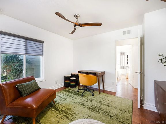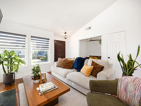 Rare opportunity in the highly desirable "Berries" neighborhood of Lake View Estates, where homes rarely come to market. This impeccably maintained single-story home sits on the largest lot in the subdivision and has been extensively upgraded since the last sale. The property features a stunning backyard transformation with synthetic turf, custom patio, spa, and Trex deck - perfect for entertaining. Inside, the bright remodeled kitchen showcases granite counters and crisp white cabinetry, while wide-plank hand-scraped hardwood floors flow throughout. Additional upgrades include full exterior paint, custom front door, dual-pane windows, new window treatments, and upgraded PEX plumbing for peace of mind. The home offers vaulted ceilings, a cozy living room fireplace, central A/C, and a versatile 4th room currently used as an office that easily converts to a bedroom. The resort-style backyard is an entertainer's dream with brand-new synthetic turf, expansive patio, relaxing spa, and elevated Trex deck. Mature landscaping provides privacy while leaving ample space for a pool, garden, or even an ADU on this oversized lot. Located in a family-friendly community with an affordable $228/month HOA (no Mello-Roos), residents enjoy a community pool and spa, tot lots, and close proximity to Guajome Lake with hiking and biking trails. Move-in ready and turnkey - this gem won't last!