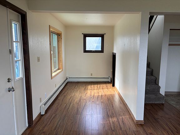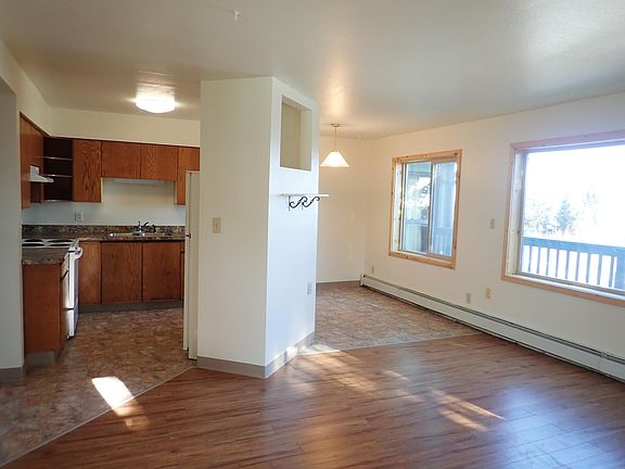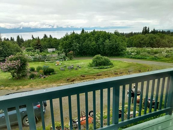 Two-story unit. In-unit washer/dryer; maintaining function responsibility of tenant. Laminate/vinyl flooring on the main level; new carpet installed upper level in 2023. Outdoor deck. Carport storage available. Near mile 11 East End Road off Marlea, about 3 miles past Fritz Creek Store. Quiet, rustic area with a view.