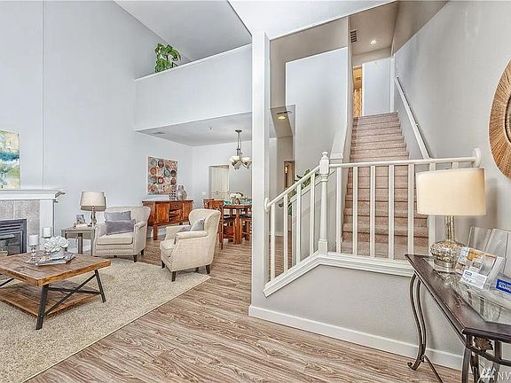 Beautiful TH in Highland Parc, w/all amenities across the street. Play areas for children, strong HOA w/no assessments & planned maintenance make it a vibrant & safe community. Inside you will find light, vaulted ceilings, beautiful laminate HW's throughout the main & a kitchen remodel to update an already functional floor plan. All bathrooms are updated, rare master on the main floor, two more bedrooms, + a spacious loft upstairs. Fenced backyard, w/large sitting area. Top Lake WA Schools!