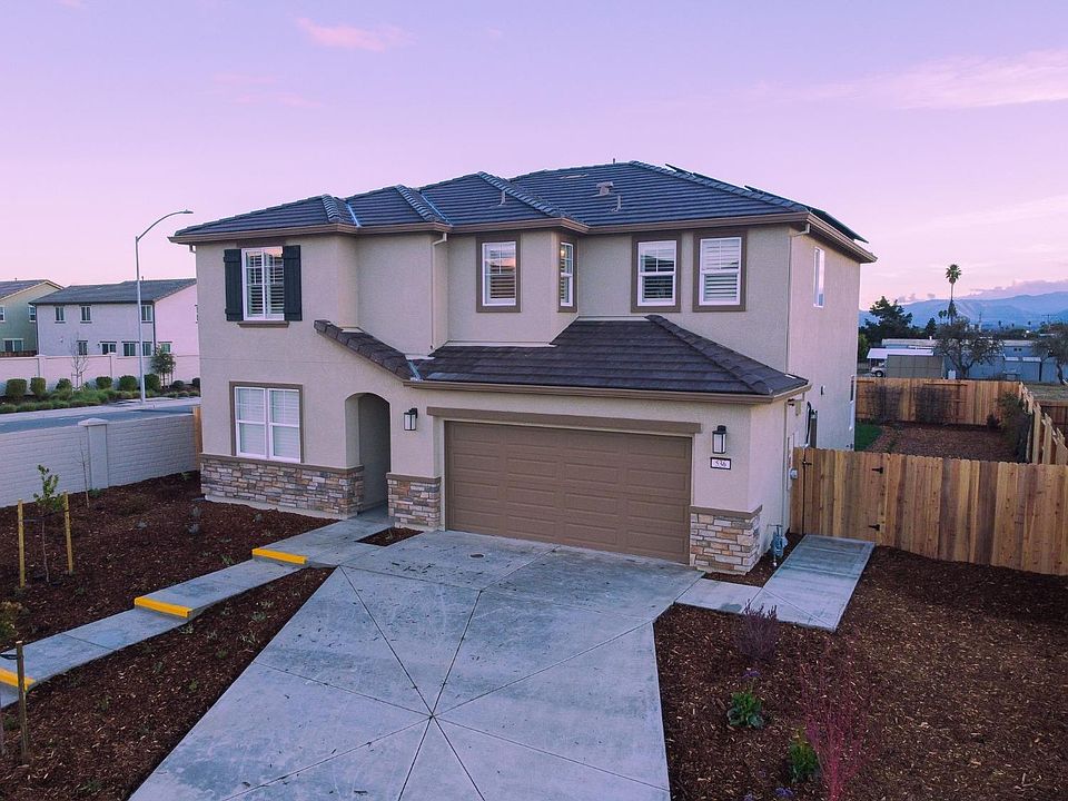 Step into elegance with this stunning 2,438 sq. ft., 4-bedroom, 3-bath former model home in the coveted Vintage Estates community in Soledad. Designed with style and comfort in mind, this home is filled with premium upgrades and thoughtful details. The gourmet kitchen is a chef's dream, featuring upgraded cabinets with oil-rubbed bronze hardware, Samsung Tuscan appliances, granite countertops, a custom backsplash, a Kohler cast iron sink, and matching oil-rubbed bronze fixtures. The family room shines with a custom entertainment cabinet, upgraded lighting, and beautiful flooring throughout the home. Upstairs, the loft is a standout space with elegant maple railings and wrought iron accents, adding a sophisticated touch. Special features include a Belleville entry door, plantation shutters throughout, and sleek oil-rubbed bronze hardware and fixtures. Step outside to a covered patio complete with a cozy fireplace, perfect for relaxing evenings or entertaining guests. The professionally landscaped front and backyard offer a low-maintenance retreat, ready for your personal touch. This home is the perfect blend of luxury and practicality. Don't wait, schedule your showing today and make this spectacular property your own!