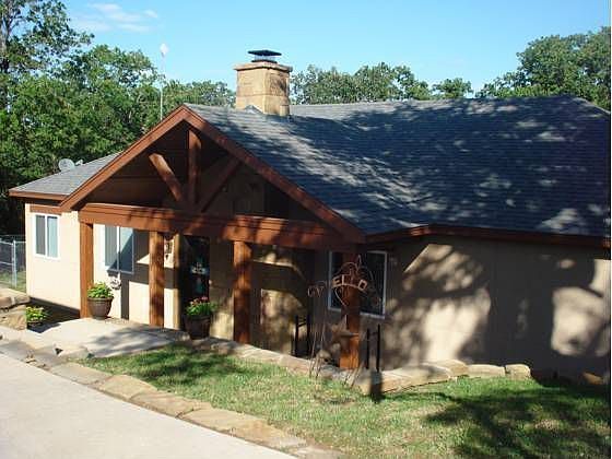 Custom built home with upgrades. 10ft. ceiling, open floor plan with large kitchen & breakfast bar, 2 pantries, dining room & split bedrooms. Large master suite with private porch to enjoy the beautiful woods surrounding the home. Covered porches in front & rear with a fireplace on the back patio. Oversized garage. Backyard offers a wood deck surrounded by trees. Surround Sound in living area. Stained concrete floors. A hidden gem.