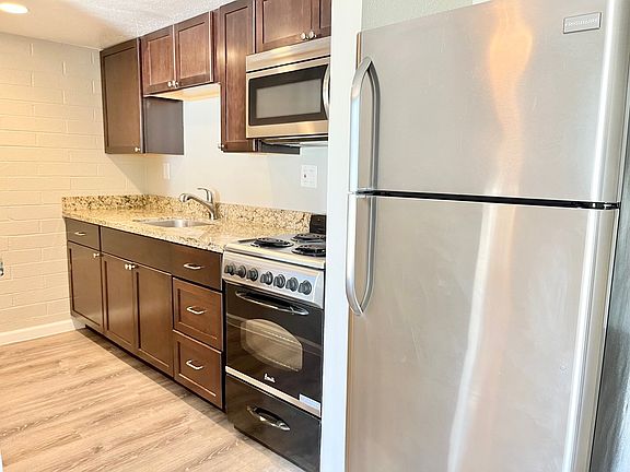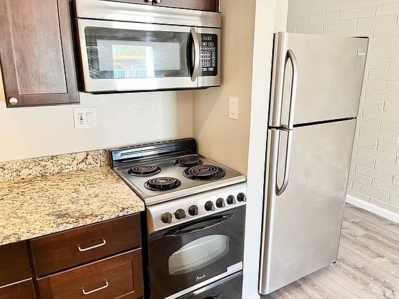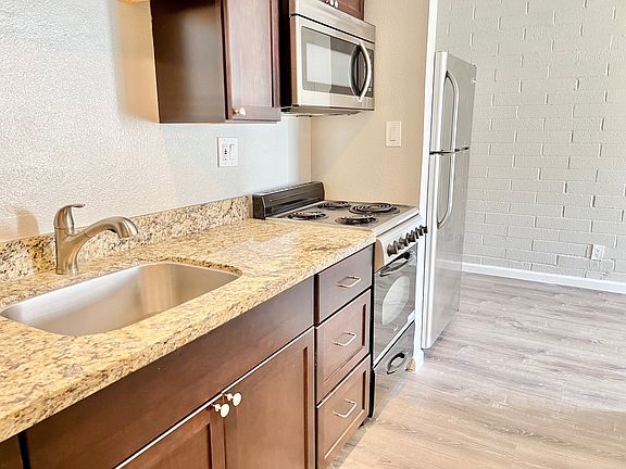 Live in a Beautiful and Centrally located Downtown Neighborhood. These remodeled units have Sleek Stainless Steel Appliances, Beautiful Granite Countertops, Custom Tiled Bathroom Showers, Wood-Look Laminate Flooring, Modern Light Fixtures, Ceiling Fans, and a Large Back Patio!