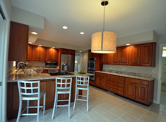 Lovely brick Georgian with great curb appeal in Meadowood area. Nice foyer greets you as you enter. Newly refinished hardwood floors in most rooms (1st and 2nd floors). Updated kitchen with Woodmode cherry cabinets, SS appliances and granite counter tops. Master suite includes a sitting room (office). Pretty fireplaces in living and family rooms. Finished basement with built-ins, half bath, kitchenette, cedar closet and tons of storage. Two stone patios and circular drive enhance the exterior. Great location. Enjoy the new fresh look!