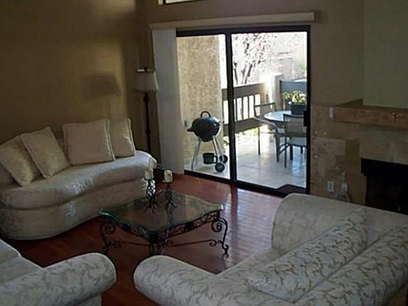 Townhouse is located in a gated community, The large living room has a nice fireplace with large glass doors that lead to the 1st patio. The kitchen is very spacious with cabinets and granite counter tops. There are 2 full bathrooms upstairs and a half bathroom downstairs. The master suite has its own balcony. All the bed rooms have Brazilian wood floors. The master bedroom is very spacious with an attached full bathroom. The other 2 bedrooms have a Jack and Jill bathroom. From the dining room you have a view of the tennis court, pool, and spa. The townhouse has an attached 2-car garage with washer and dryer hookups. Will be available 10/1/24-10/7/24. Tenant will be responsible for gas and electric.