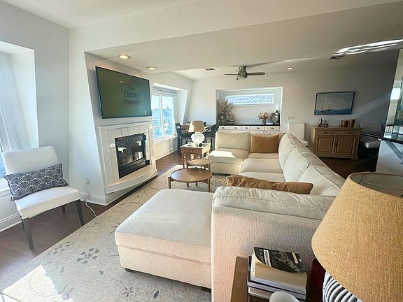 *SUMMER RENTAL* This immaculate, fully furnished rental, just one block from the beach! Offering breathtaking ocean& beach views, 2 bedroom, 2.5 bathroom apartment is the perfect retreat for those looking to relax in comfort & style.Step inside to find hardwood flooring throughout and an inviting living room with a cozy gas fireplace ideal for cool coastal evenings. The eat-in kitchen features a breakfast bar, perfect for casual dining, while the separate dining room provides additional space for entertaining.Each spacious bedroom boasts its own private full bath. conveniences include a laundry room, central air conditioning, ice maker, gas cooking. its prime location just steps from the sand, this stunning rental offers the ultimate lifestyle