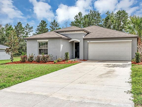 Experience the best of Florida living in this beaultiful, like-new home built in 2022. Nestled on an oversized lot in Marion Oaks with no rear neighbors, this 4-bedroom, 2-bathroom residence offers a peaceful setting, privacy and modern comfort. The heart of the home is the expansive open-concept living area. The kitchen is a standout feature, complete with a center island, sleek stainless steel appliances, and a spacious pantry. It seamlessly flows into an open café and a large family room, creating the perfect space for daily life and entertaining guests. The owner's suite is a true sanctuary, featuring an oversized bedroom and an elegant ensuite bathroom with dual sinks, a linen closet, and a roomy walk-in closet. Practicality meets style with ceramic tile flooring in the foyer, kitchen, bathrooms, and laundry room, while plush carpeting in the family room and all bedrooms provides a cozy touch. An inside laundry room makes chores a breeze. This home is conveniently located just a short drive from the vibrant heart of Ocala, known as the "Horse Capital of the World," providing easy access to shopping, dining, and world-class equestrian facilities. With its modern design and prime location, this home is a must-see. Call today for more information!