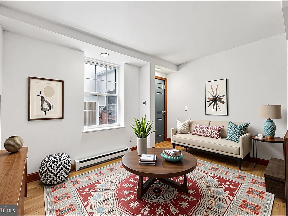 Tucked away on a leafy side street in Queen Village, this sweet historic trinity is the ultimate city hideaway—with not one, but two outdoor spaces.Step through a secure gate off Montrose Street into a shared patio, the perfect spot to chat with neighbors over morning coffee. Inside, the living room greets you with hardwood floors, a fireplace full of vintage charm, and that classic winding trinity staircase.The kitchen sits just below, reached by a spiral stair, where exposed brick and a long window set the stage for an urban cook’s dream—bright light for your herb garden and a cozy nook for intimate dinners. Upstairs, the second floor offers a sleek bathroom with tub/shower combo, laundry conveniently nearby, and a flexible bonus room—ideal for a guest space, office, or creative studio. On the top floor, the spacious bedroom features generous closets and direct access to your own private balcony. Between the balcony and the patio, you’ll always have fresh air and sunshine right outside your door. Here, life feels both peaceful and connected. Within a few blocks, you’ll find pocket parks, more than five coffee shops, and some of Philly’s best restaurants. Plus, it’s located in the award-winning Nebinger Elementary catchment. An affordable, character-filled pied-à-terre in one of the city’s most desirable neighborhoods—perfect for the single urbanite who wants charm, walkability, and lifestyle all wrapped into one.