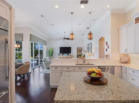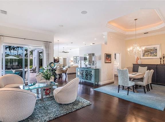 Sensational Ruttenburg floor plan with 11' volume ceilings, 4 bedrooms, 3 baths, 3 car garage, and located on one of Park Shore's most beautiful streets. Add a stylish renovation to include; impact windows and doors, new kitchen, new bathrooms, wood & tile flooring, and a new pool deck & heater. You have southern exposure, underground utilities, circular driveway and fenced yard. This is the perfect Naples home ready for full or part time living (Ruttenburg floor plans are designed for full time living). Lovely light filled, open areas for entertaining and expansive room to live. Wonderful location between Venetian Village, Pelican Bay and Olde Naples, with shopping, dining, beach and cultural options in close proximity. Park Shore residents are eligible to purchase boat docks located along Gulf Shore Boulevard North & private beach membership is available for the Raymond Lutgert Beach Park.